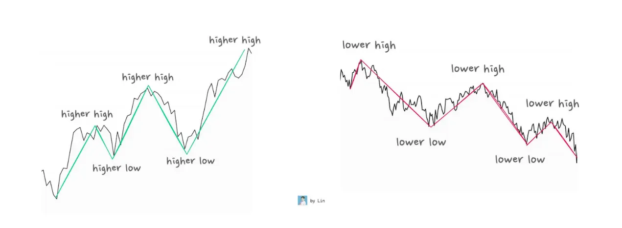 要识别这些趋势,你也可以使用简单的工具,如趋势线或移动平均线来帮助你确定总体方向。