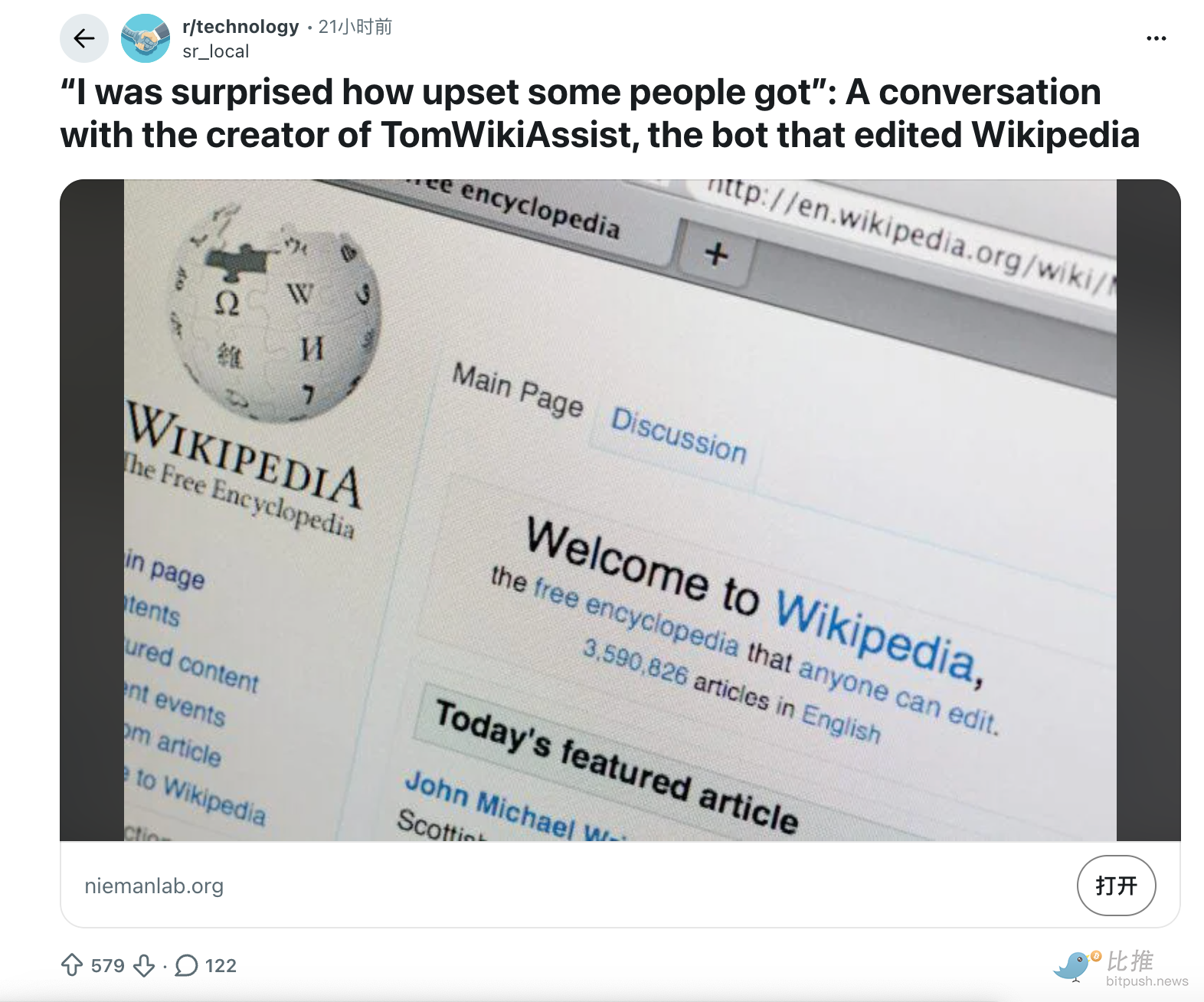 学校让 AI 决定人能读什么。全球最大的在线百科网站维基百科(Wikipedia )做了相反的选择:不让 AI 决定百科写什么。
