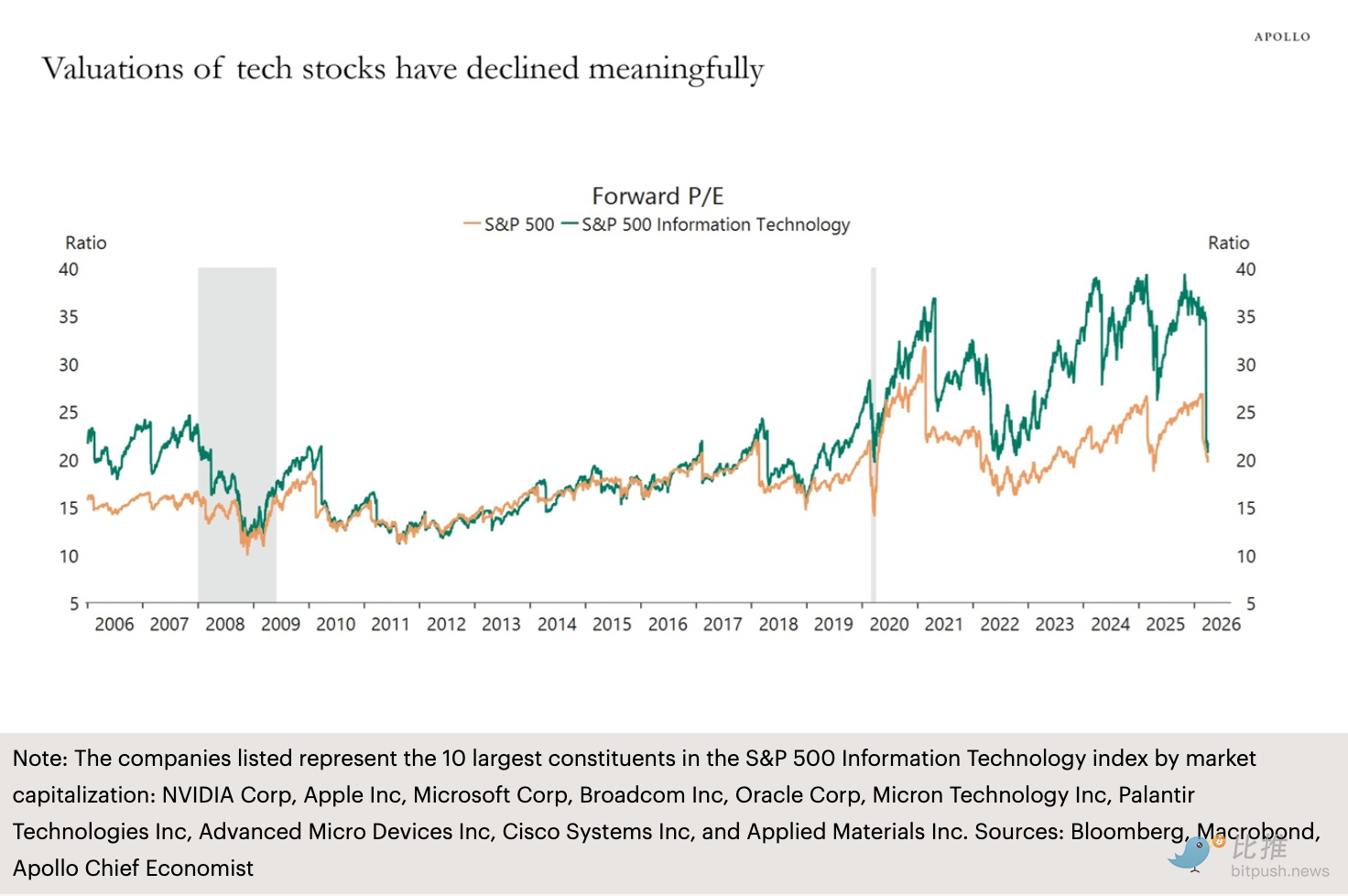 原标题:科技股估值回到 AI 繁荣前水平!Apollo 首席经济学家:远期市盈率从 40 倍压缩至 20 倍
