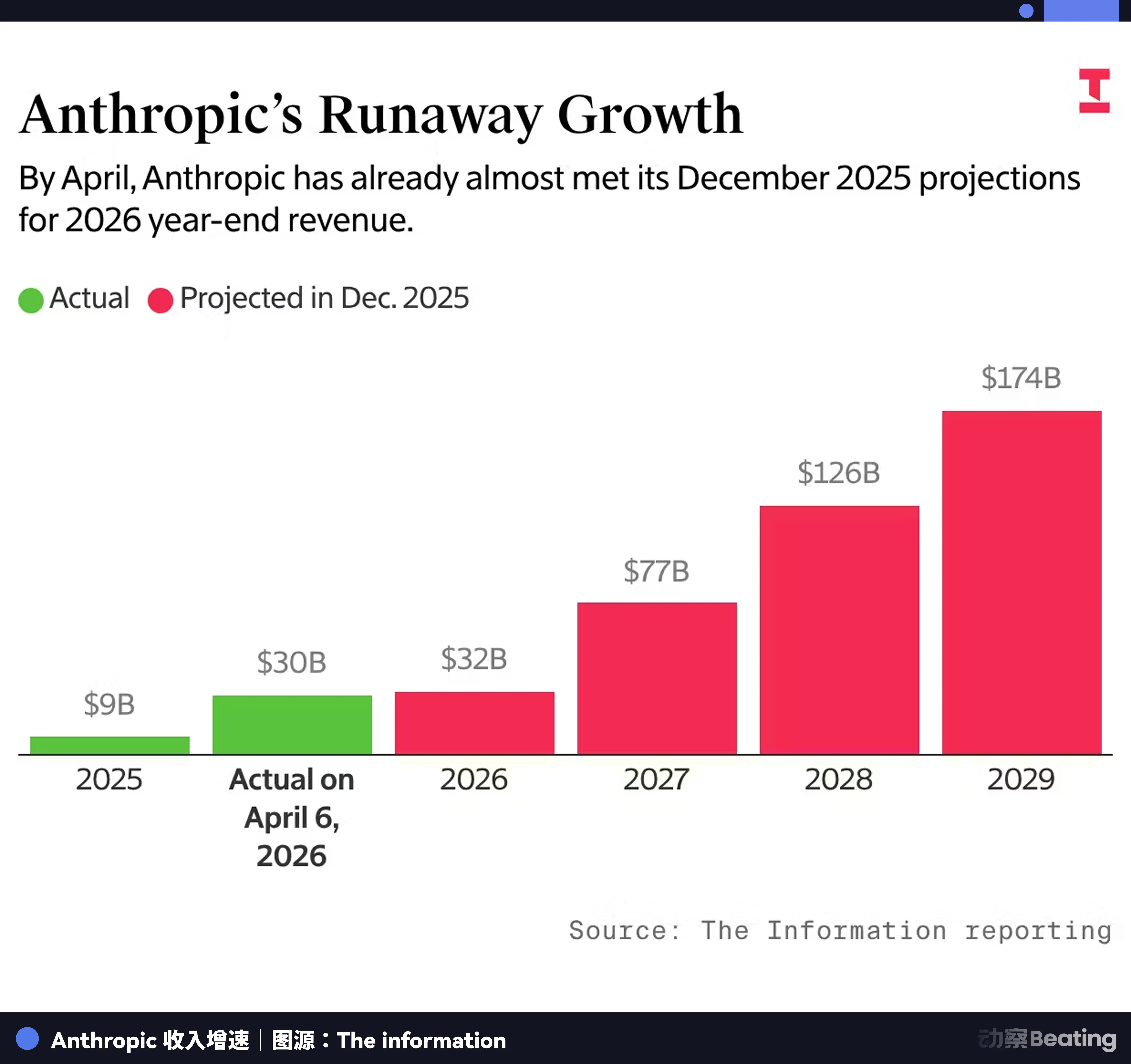 Anthropic 的营收在 2025 年底还是 90 亿,到 2026 年 3 月蹿到 300 亿,增速是 OpenAI 的三倍多。这个势头要是在投资者脑子里扎了根,OpenAI 8500 亿的估值就得面对一个要命的问题:你凭什么比人家贵一倍,增速还慢三倍?