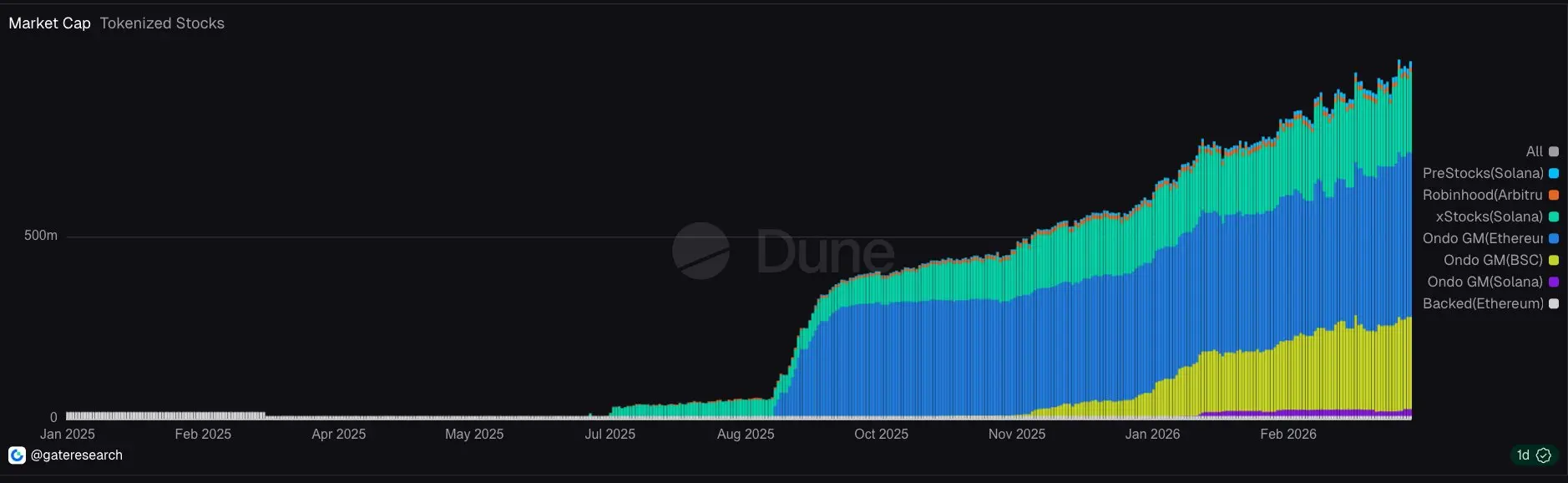 Robinhood (Arbitrum):尽管提供了约500种代币化股票,但链上市值仅为1160万美元。媒体报道与实际使用之间的落差非常明显。